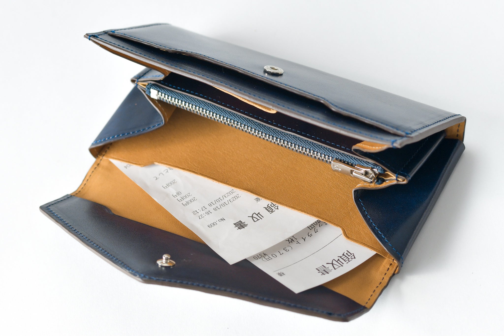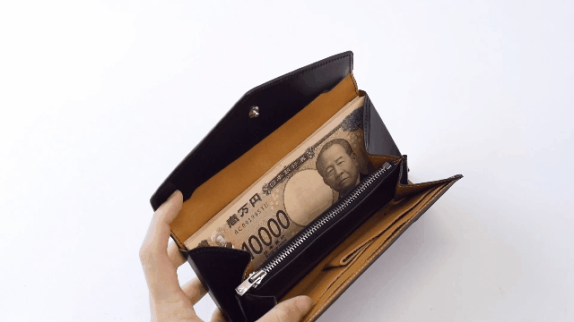 フラップの長財布を使っていて、お札の端が折れてストレスを感じた経験ありませんか?原因はマチに使われている革がお札の角に接触することでした。