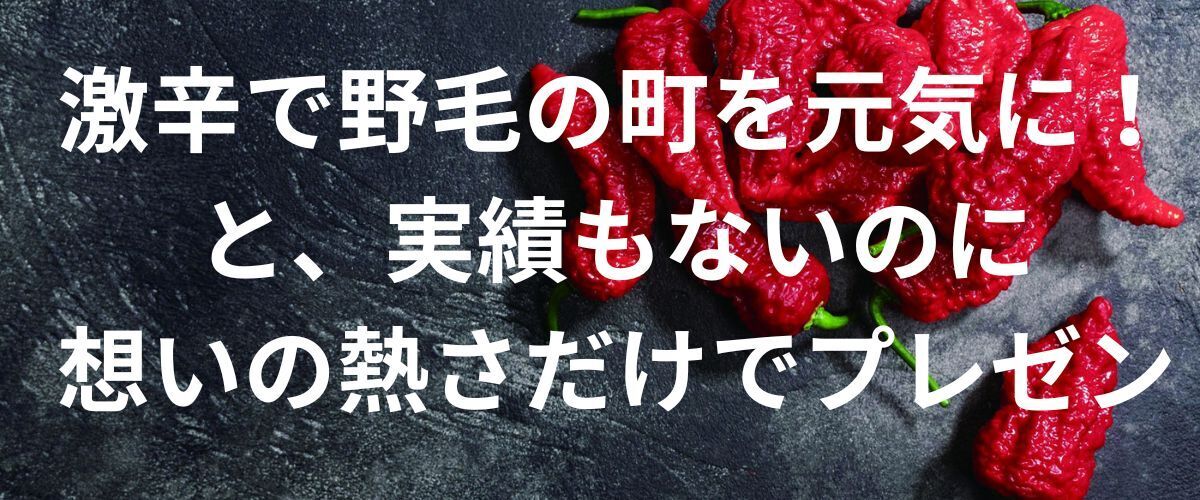 それの1つの答えとして、「野毛の飲み屋街」を激辛(のウチの商品)で町おこしをしたい!!と、プレゼン。
