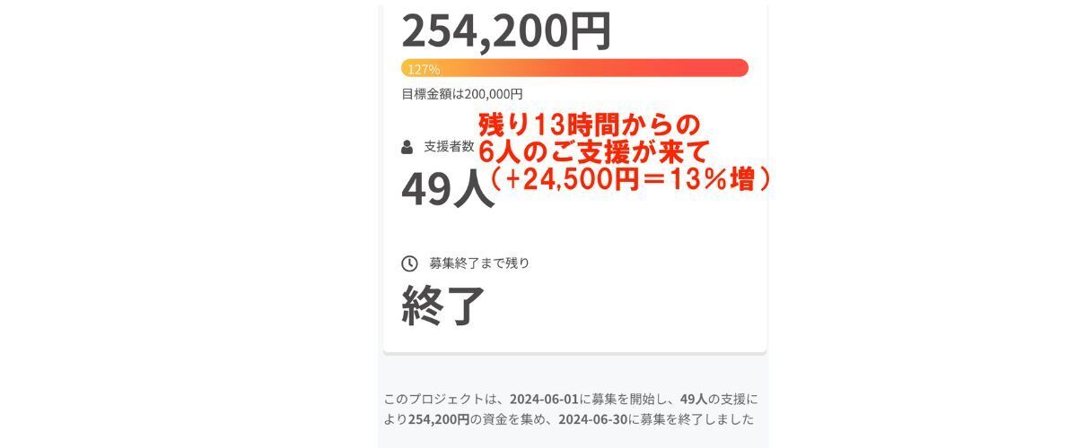 9月 30日 クラウドファンディング終了