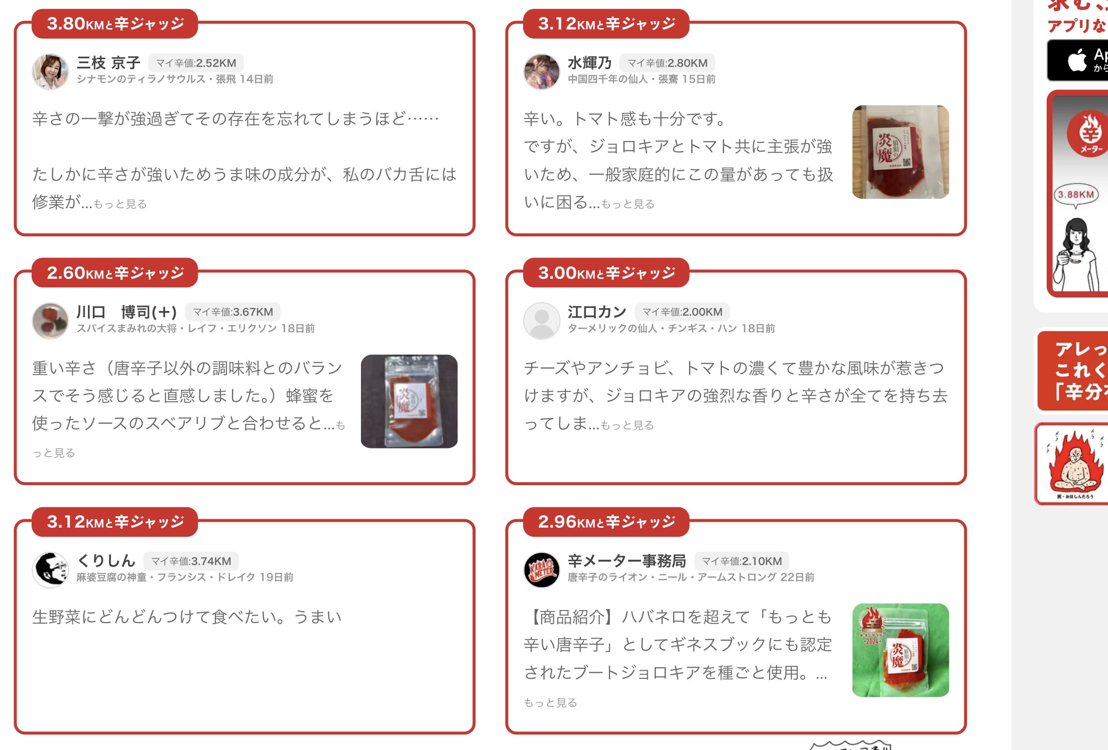 「狼狽の炎魔」とか「青天の柚胡椒」と商品名を打ち込んで検索してみると・・・