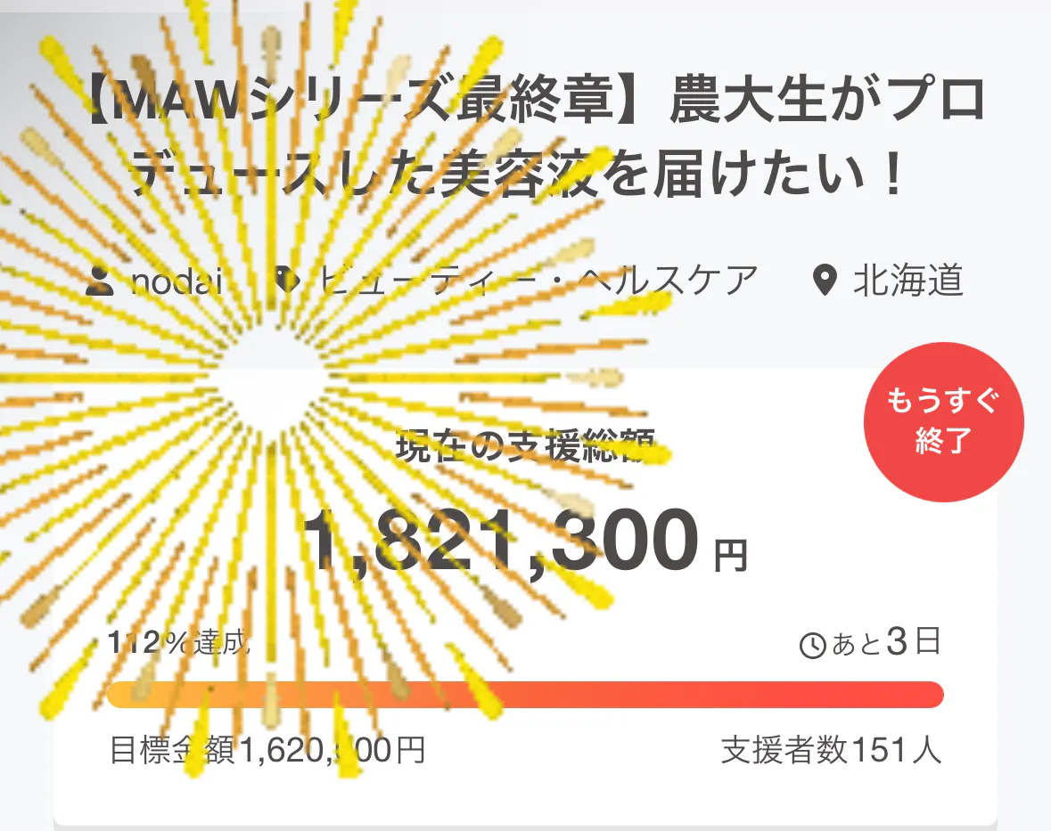 このプロジェクトは、2025/03/15に募集を開始し、 159人の支援により 1,898,050円の資金を集め、 2025/04/14に募集を終了しました