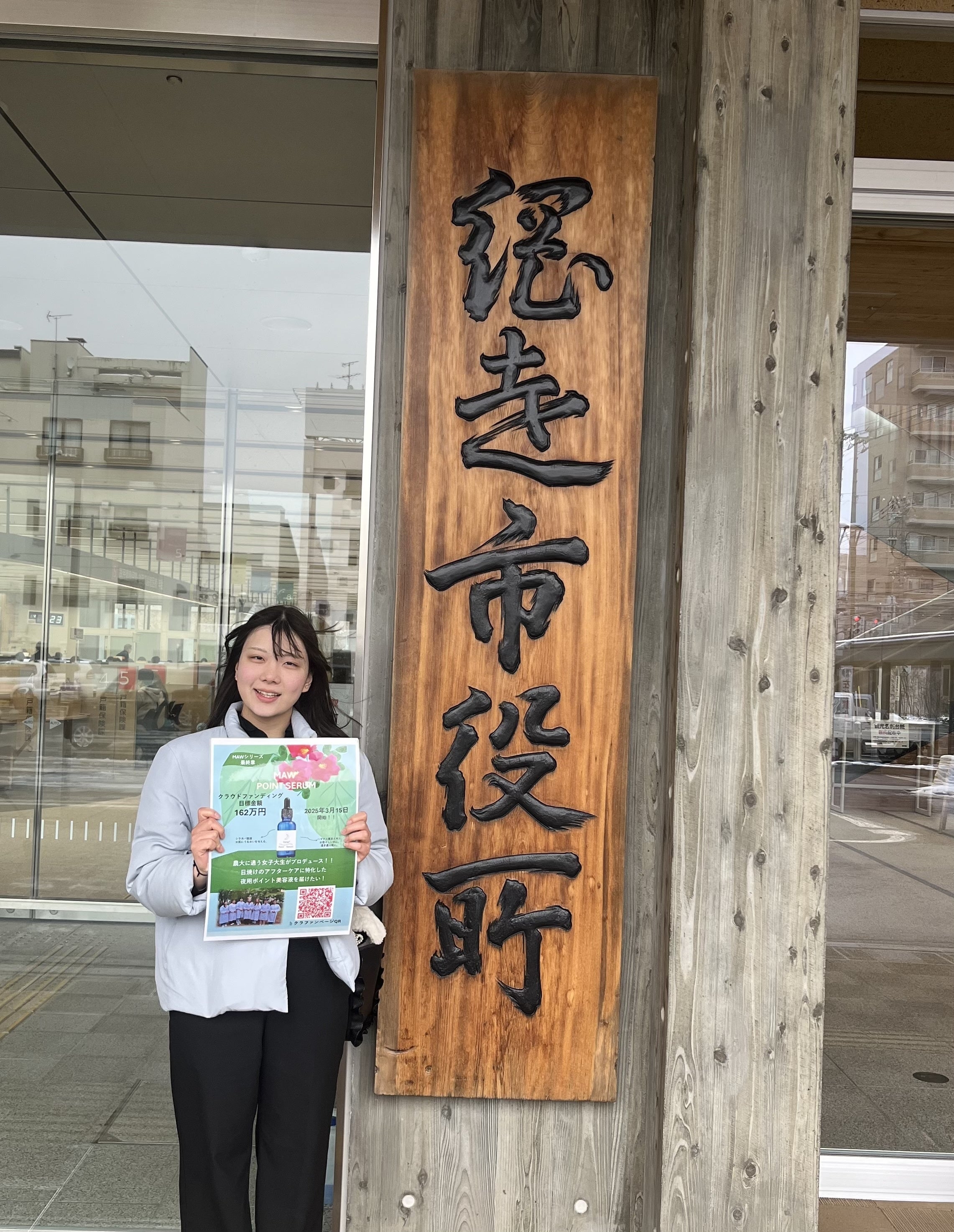 こんにちは。今日のお昼に市役所の方にチラシを配りに行かせていただきました!以前より学生コスメの活動を応援してくださり、とても嬉しく思っています!!また、市役所の方にアドバイスをいただき、エコーセンターの方にもポスターを貼らせていただきました!ぜひ、訪れた際には見つけてみてください!mawメンバー