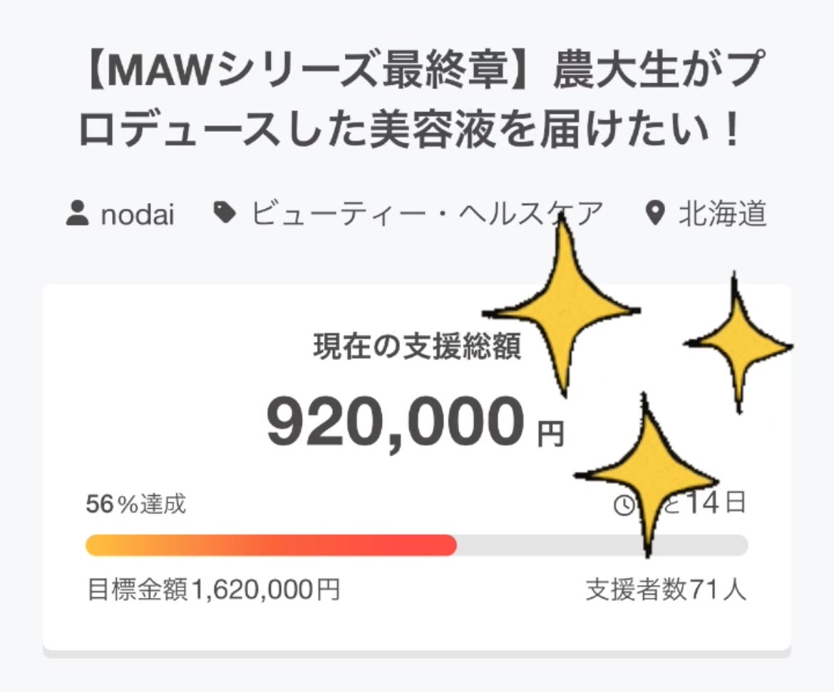 こんにちは。本日、目標金額が90万円を突破いたしました!!ご支援いただいた皆様、ありがとうございました!クラウドファンディング終了まであと2週間、目標金額達成まで走り続けます。ぜひ、ご支援のほどよろしくお願いします!!mawメンバー