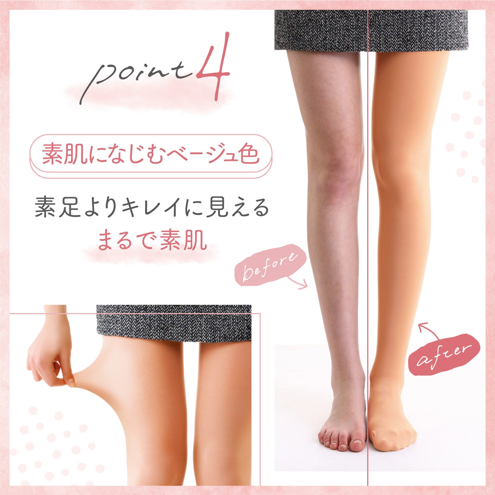 単に肌色のタイツを作るだけでは、「タイツを履いている」感が残ってしまうのです。