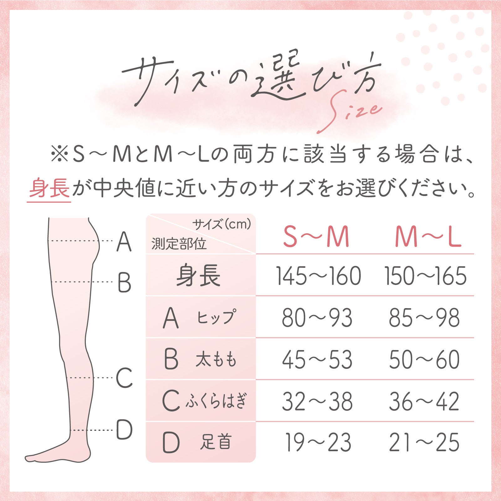 ・S-M:身長145-160cm、ヒップ85-98cm