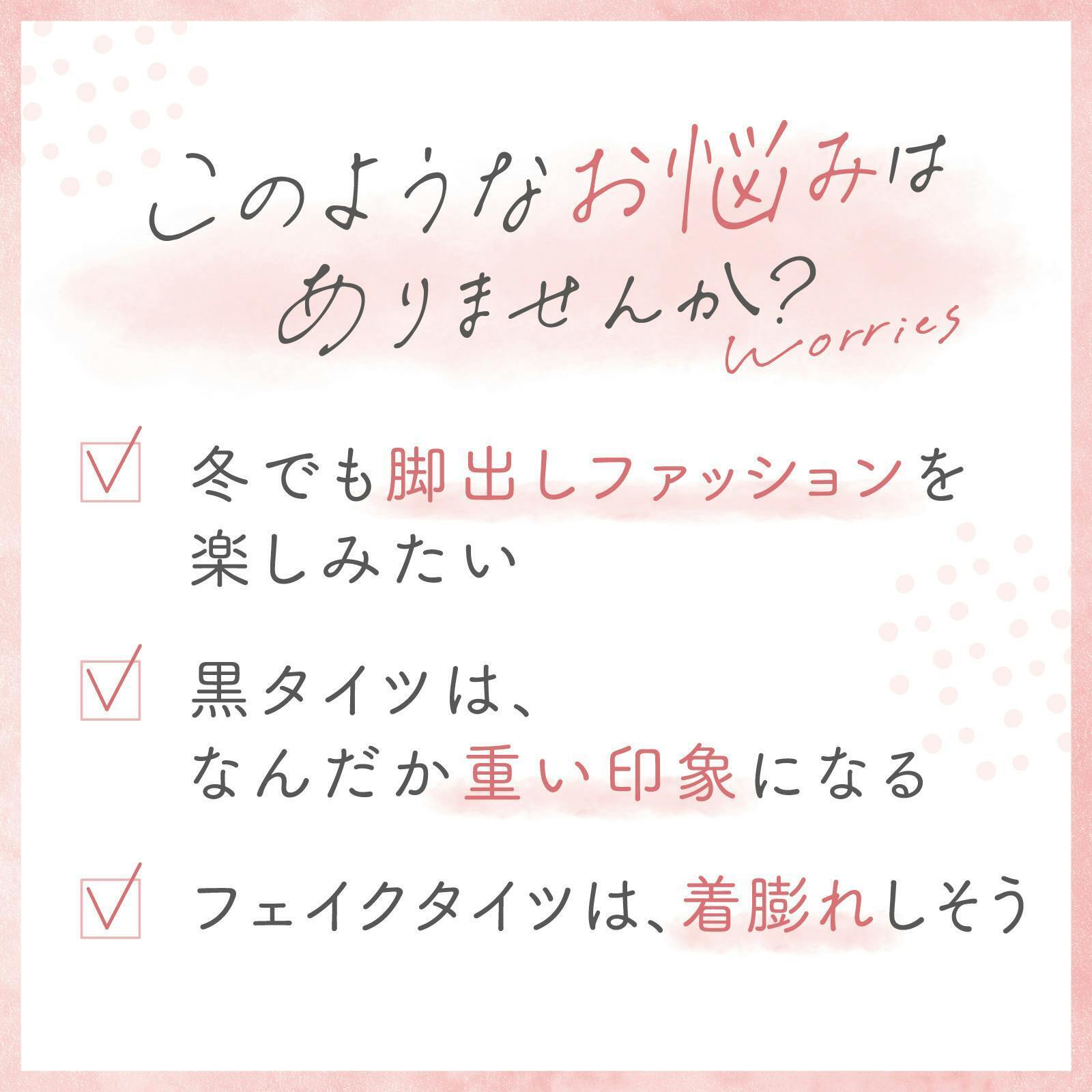 このような女性が抱える「冬のお悩み」を解決する、革新的な着圧フェイクタイツが誕生しました!