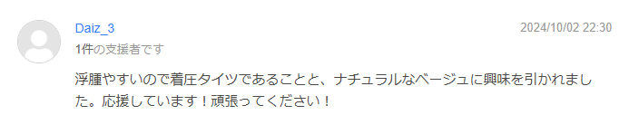 2024/10/03 15:4625周年を迎えたスリムウォークの新たな試みにご賛同頂きありがとうございます!! 着圧機能と商品の色味にご興味をお持ち頂けた事、大変うれしく思います。フェイクタイツに求められる「自然な素肌感」とスリムウォークが培ってきた「段階圧力機能」を両立出来る製品となるよう、これまで何度も試作と試着を繰り返しました。ご支援頂いた事を満足頂ける商品をお手元に届けられるよう努めてまいります。お届けまでしばらくお待ちください。 心よりの感謝を込めてプロジェクトメンバー一同 もっと見るご支援とご期待に心から感謝申し上げます!
