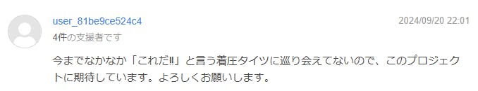 このプロジェクトの為に新たに開発した「着圧フェイクタイツ」が、支援者様のご期待に応えられる着圧商品となるよう、そして「あなたらしくハッピーな毎日」をお手伝い出来る素晴らしい機会になるよう精一杯努力を重ねて参ります。