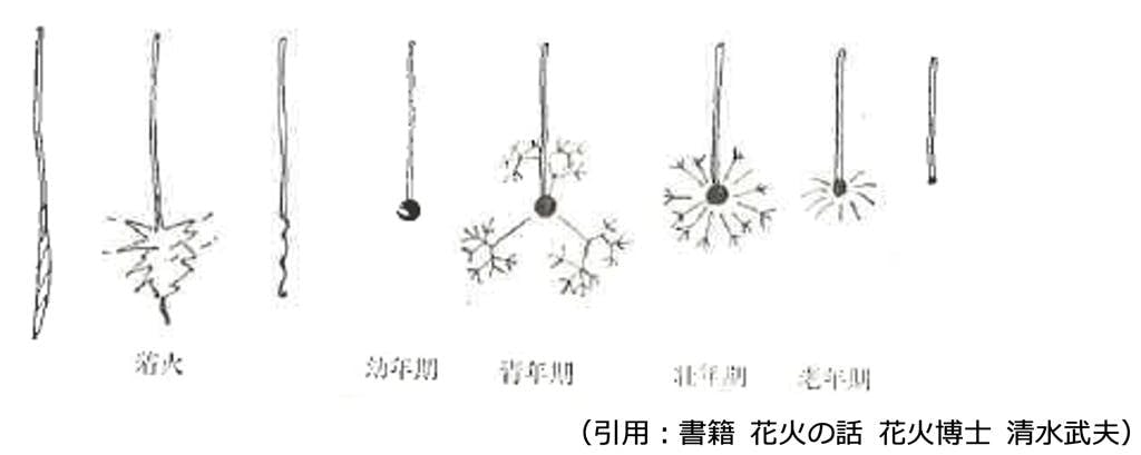 (火球:幼年期 松葉:青年期 ぼたん:壮年期 散り菊:老年期)