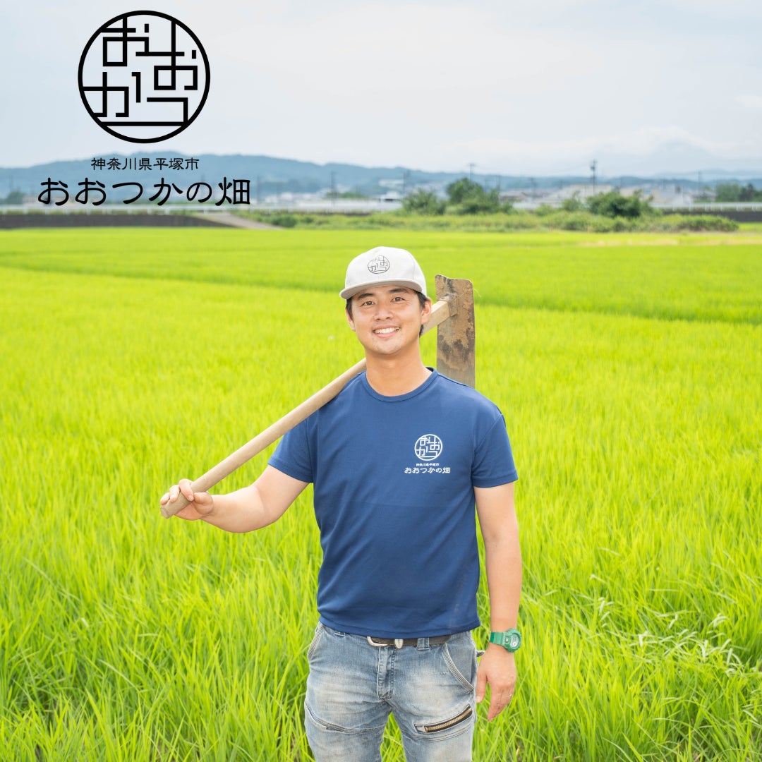 生まれも育ちも神奈川県平塚市、実家が兼業農家で小さな頃から農業と共に過ごしてきました。3年前に「おおつかの畑」を開業し、地元平塚市で生まれた品種はるみを栽培「おおつかの米」という自社ブランドのお米の栽培、販売をしております。