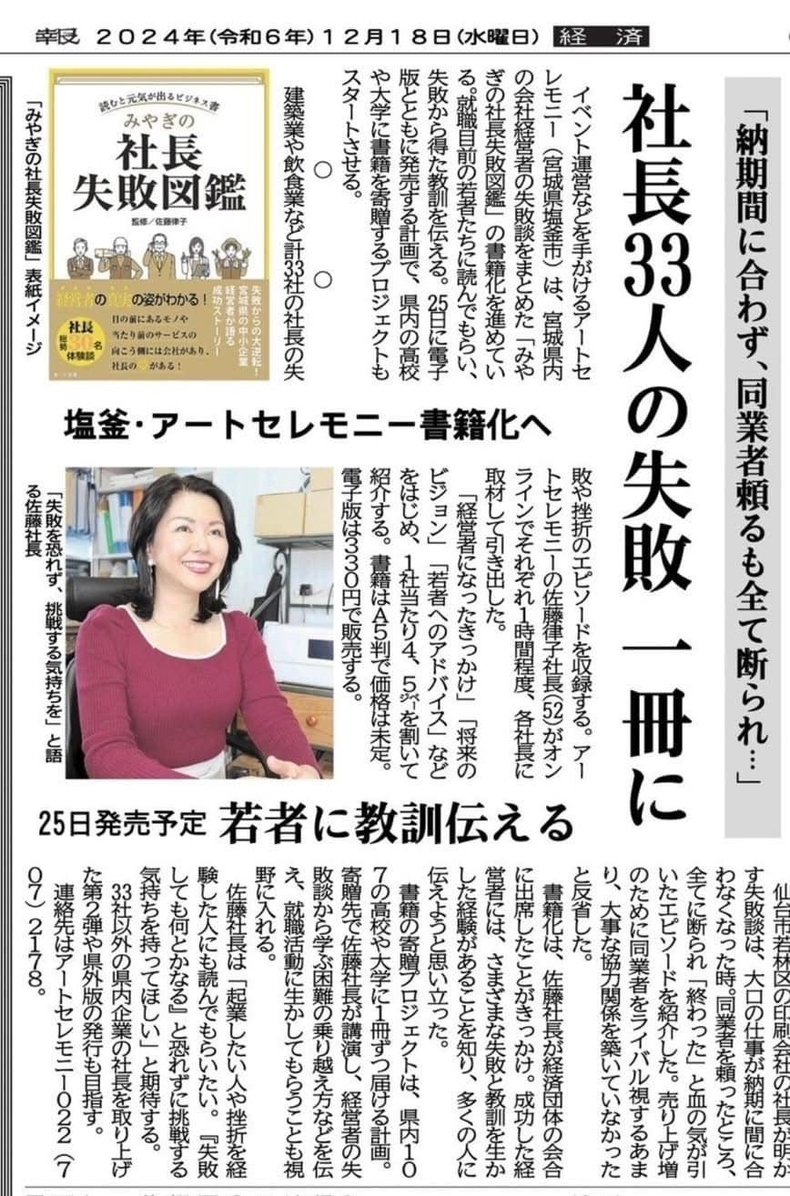 「みやぎの社長失敗図鑑」が本日の河北新報朝刊に掲載されました!