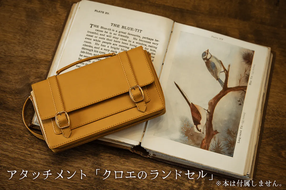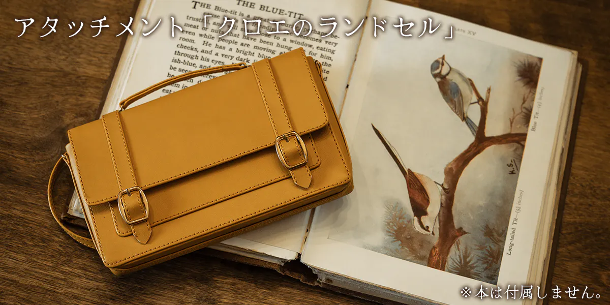 合皮製のオリジナルランドセルです。クロエのぬいぐるみに装着して一緒にお出かけ♪