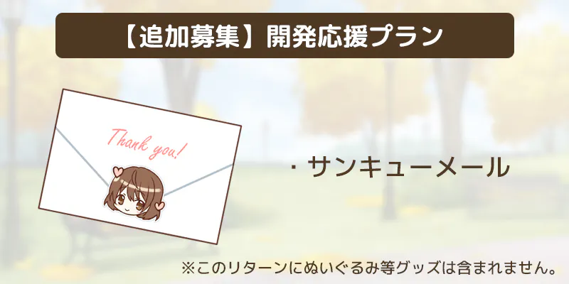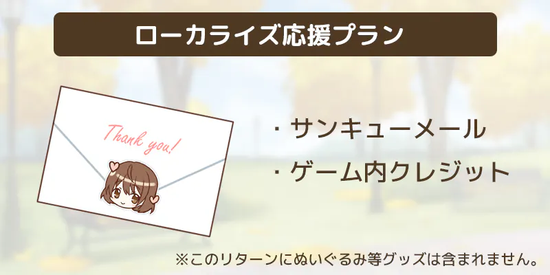 ▲シンプルな応援プランです。リターンはサンキューメールとゲーム内クレジットのみとなります。