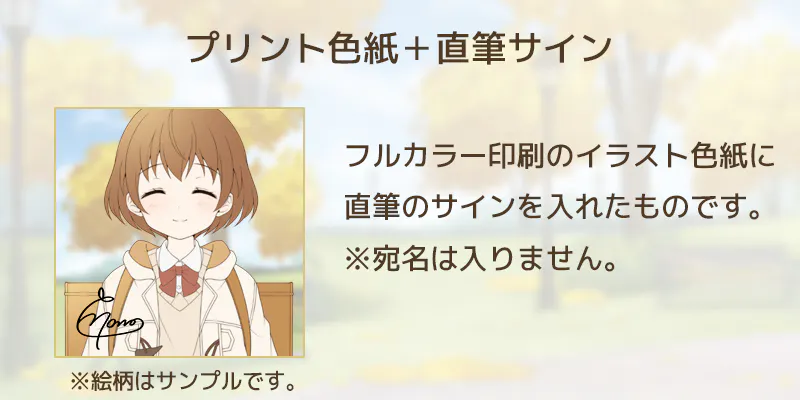 フルカラープリント・直筆サインの色紙を加えたプランです。