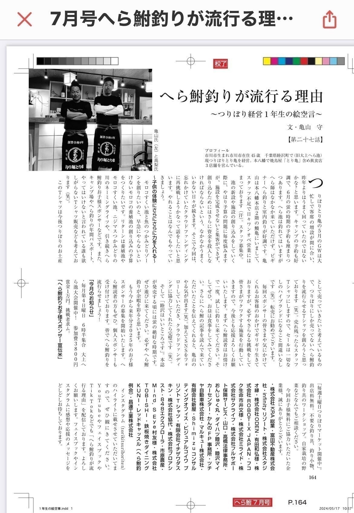 現在は釣り堀・キャンプ場・飲食店をやりながら、へら鮒釣りを知ってもらうきっかけをつくっております。