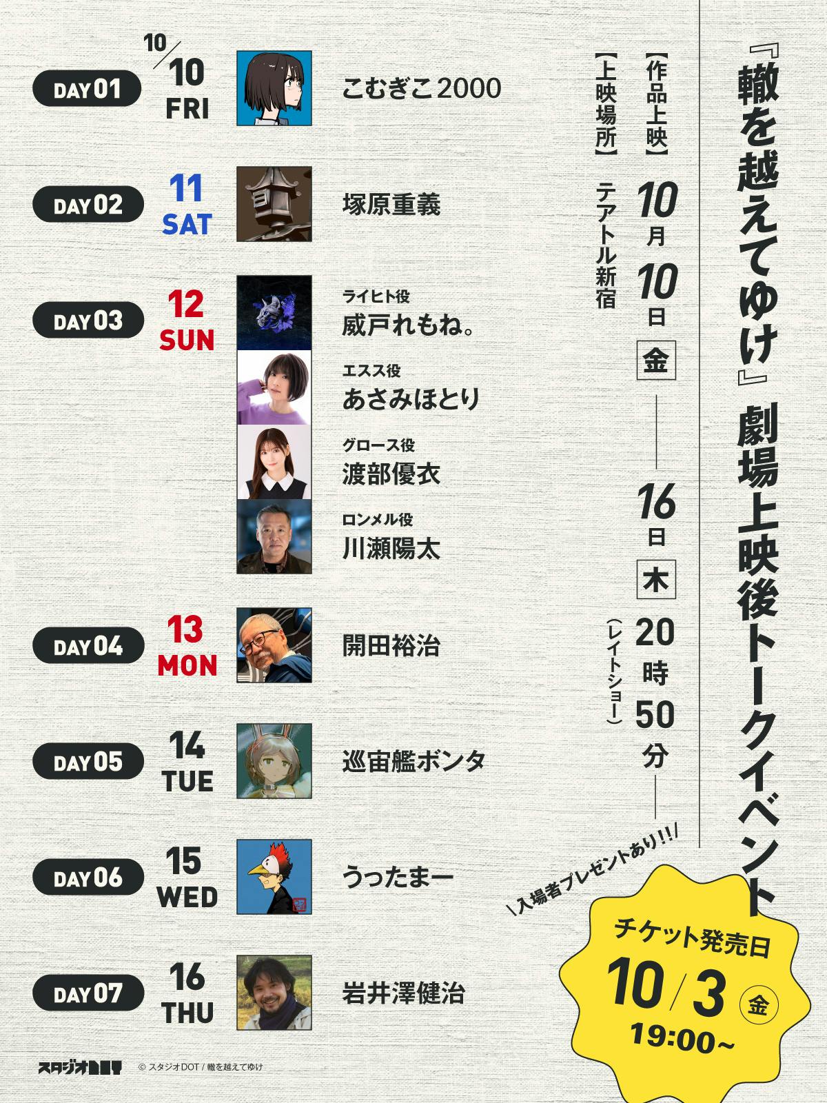 期間中、日替わりでキャストの皆様をはじめ、超豪華ゲストのクリエイター様方をお招きし、監督・プロデューサーと一緒に、作品の裏側や制作秘話などを語っていただく予定です。
