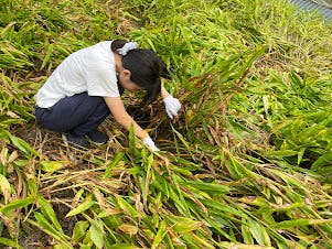 地中から芽が出てくるので、それを取っています。