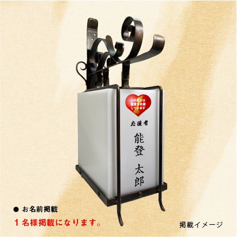 高額の支援者様には看板の側面(道路側)に能登応援マークと大きくお名前の印刷を掲載させていただきます。【掲載枠サイズ】H28.5cm×W12.5cm【掲載サイズ】1名当たりの文字サイズ H18cm×W4cm