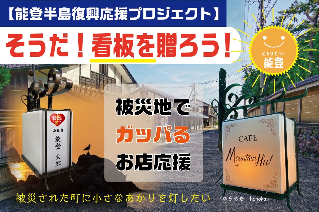 Facebook 能登応援団に「そうだ、看板を贈ろう!」プロジェクトを投げかけた当初に逸早くご応募いただきましたご店舗様です。