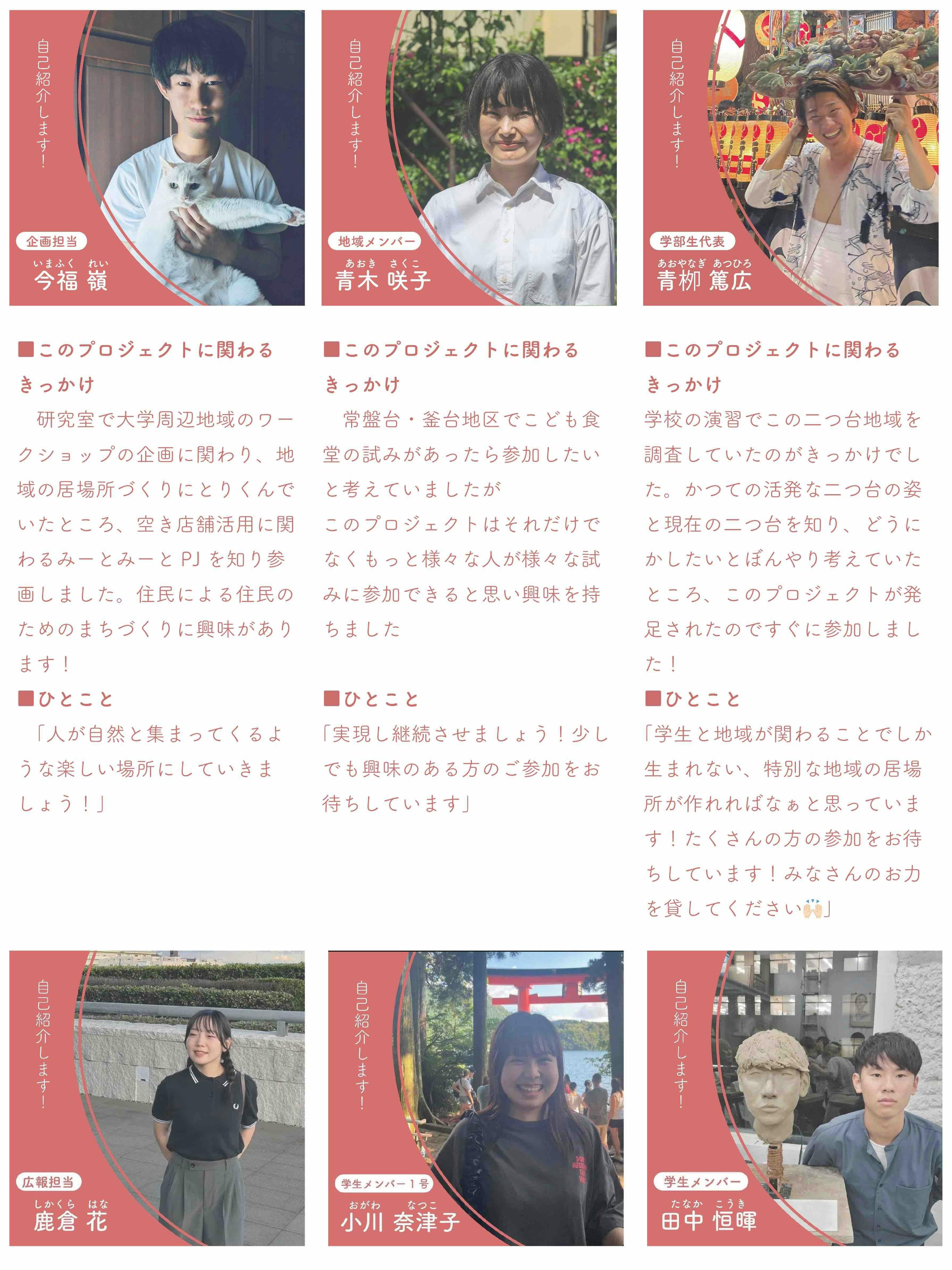 今後は、このメンバーでこの地域を盛り上げるための活動をしていきたと考えています。現在もメンバーを募集していますので、興味がある方はぜひ声をかけてください!
