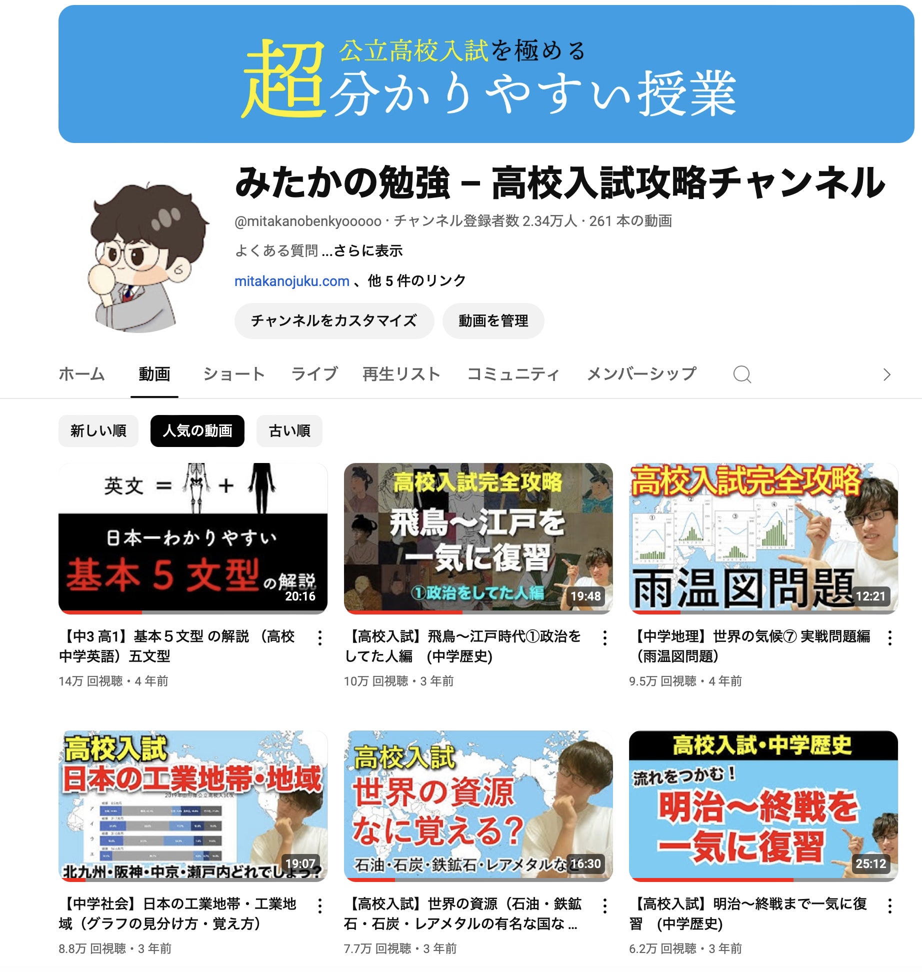現在チャンネル登録者2.4万人、総再生回300万回で多くの高校生や中学生に視聴してもらっています。動画を見て「分かりやすい!」と言ってもらえるのも嬉しいですが「勉強が好きになった!」「楽しい!」というコメントが一番嬉しいです。