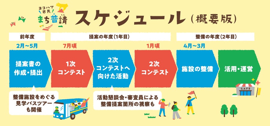 ヨコハマ市民まち普請事業とは、横浜市民が主体となって行う地域の課題解決や魅力向上のための施設整備を伴うまちづくりに対して横浜市が支援を行う事業のことです。