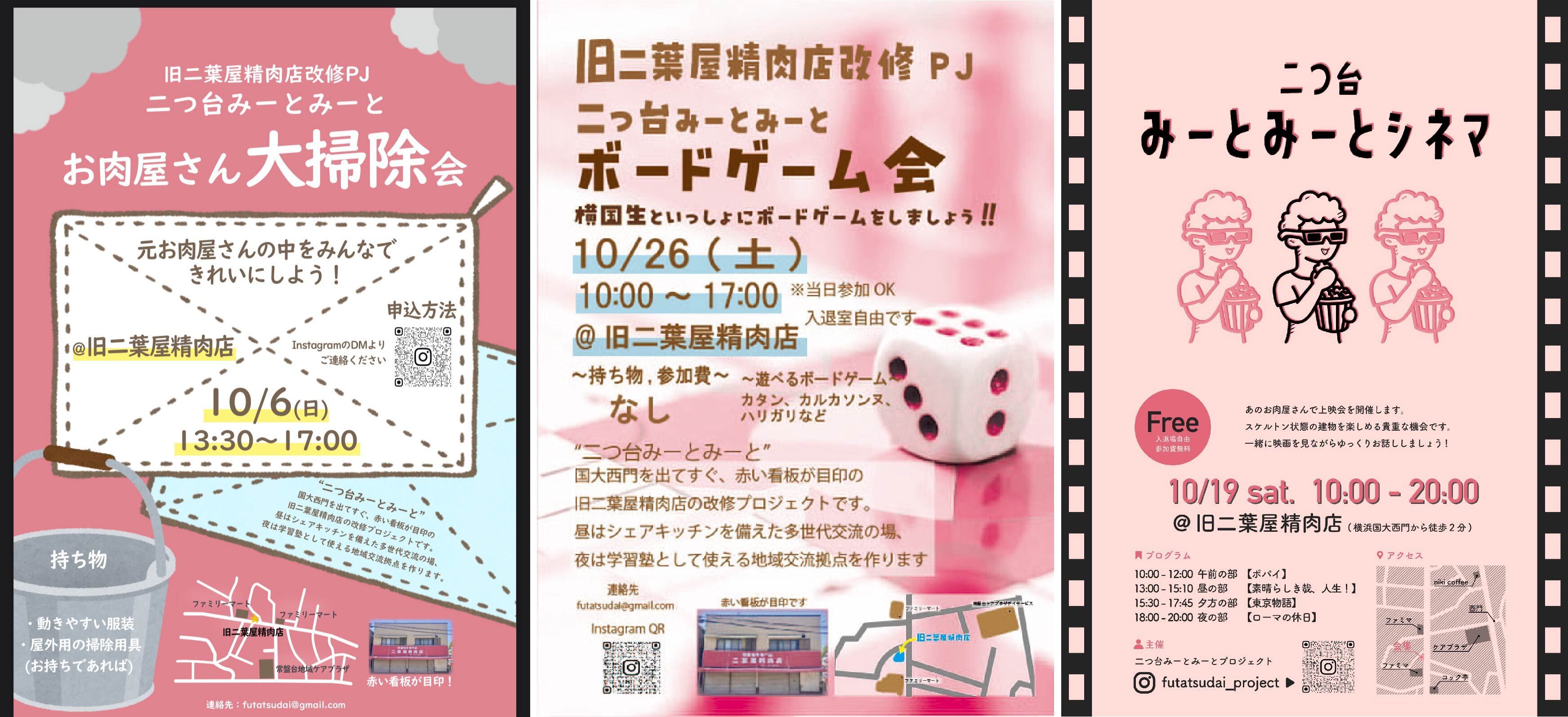 この場所の認知度を高めることと、地域の声を多く聞くために、旧二葉屋精肉店でさまざまなイベントを行いました。