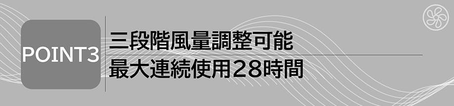 「WalkFan4.0」は卓上扇風機の優しい風から強い風まで三段階の風量を調整できます。