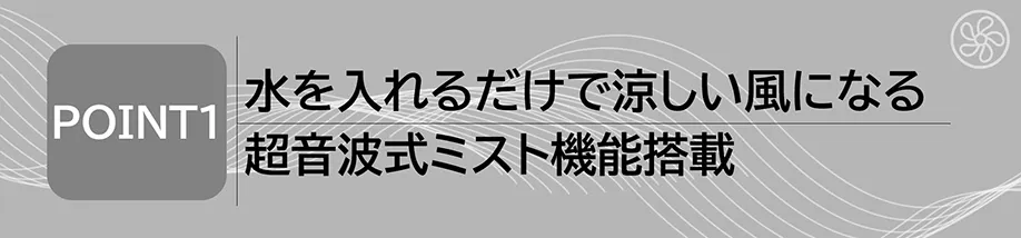 ■超音波式ミスト機能を搭載、涼しい風をあなたに届ける