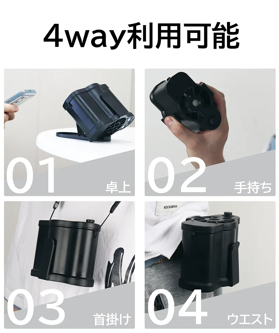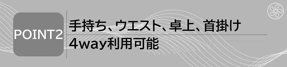 ■手持ち、ウエスト、卓上、首掛けの4way利用可能