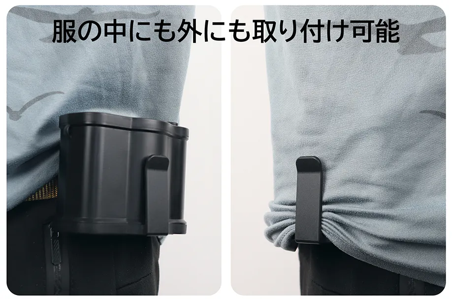 服の中にも外にも取り付け可能です。