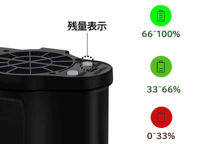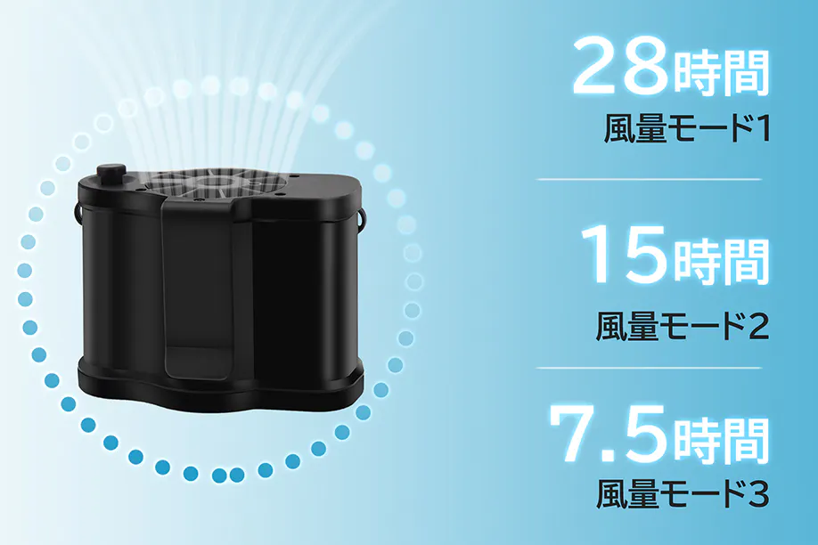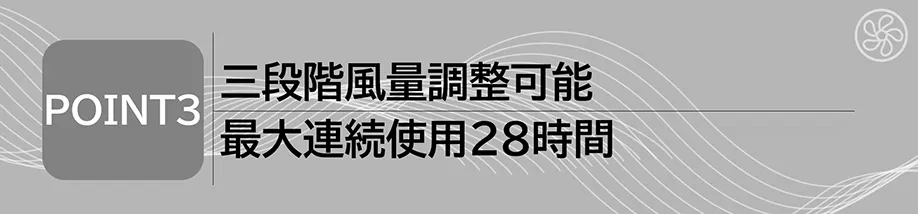 ■三段階風量調整可能、最大連続使用28時間