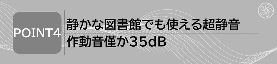 ■作動音わずか35dB、静かな図書館でも使える超静音