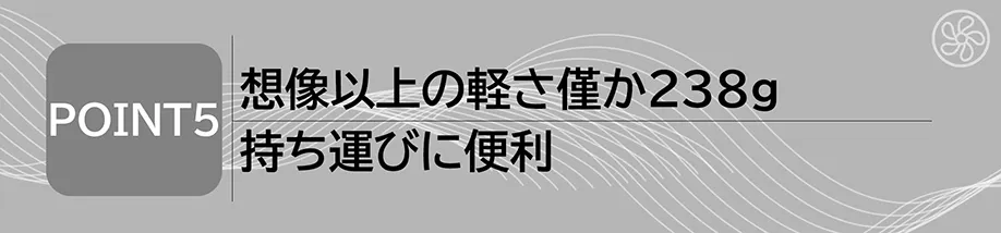 ■想像以上の軽さわずか238g、持ち運びに便利