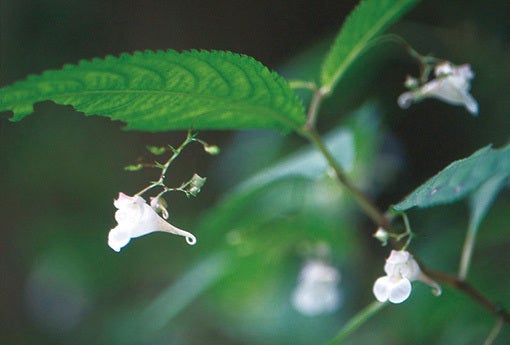 ひっそりと咲くエンシュウツリフネソウ(Impatiens hypophylla var. microhypophylla)