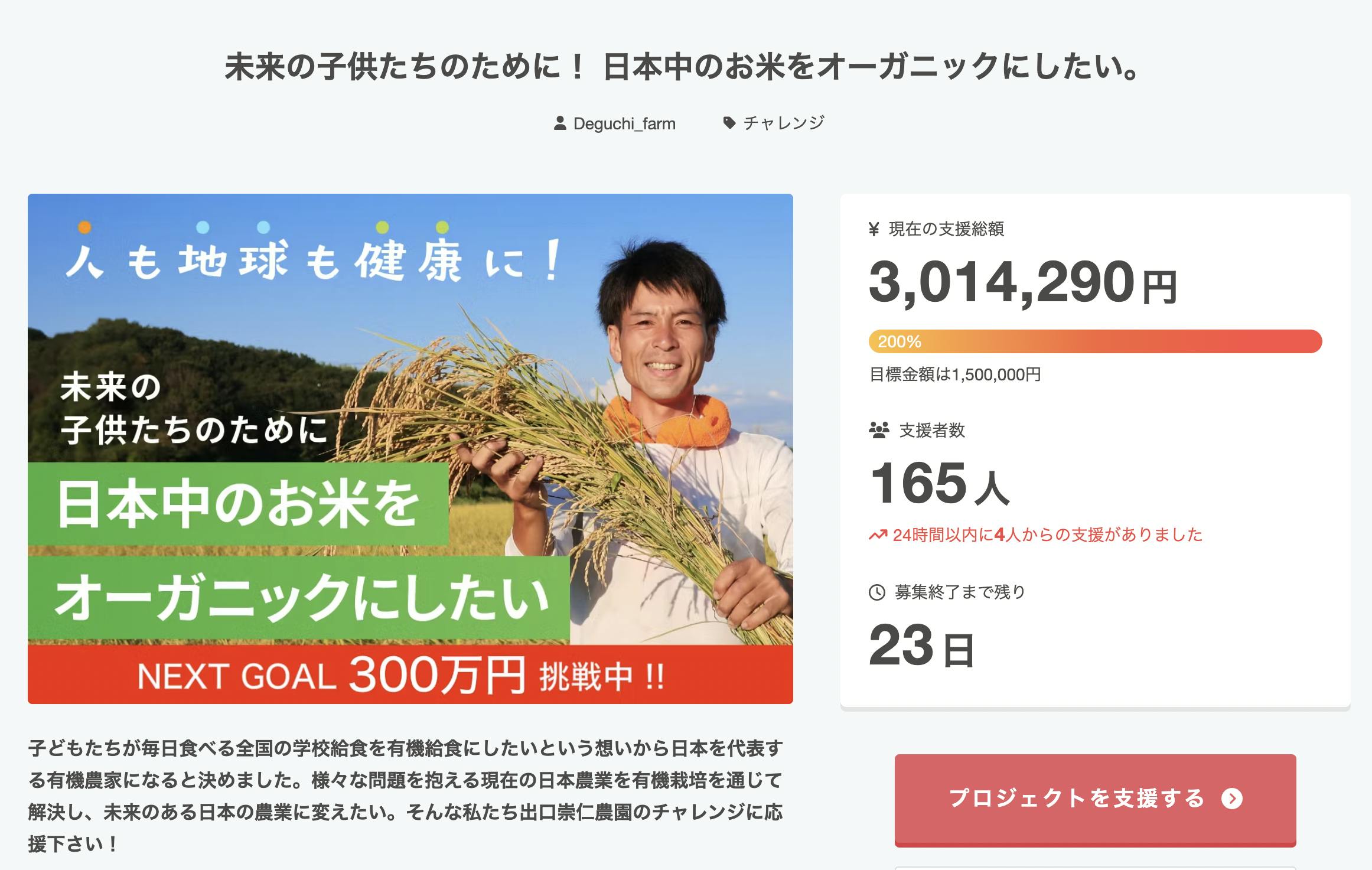 さて、本日はNEXTGOALを突破したということで、より多くの方々に出口崇仁農園のことをもっと知っていただきたいという気持ちを込めて新たにリターン商品を追加しました。