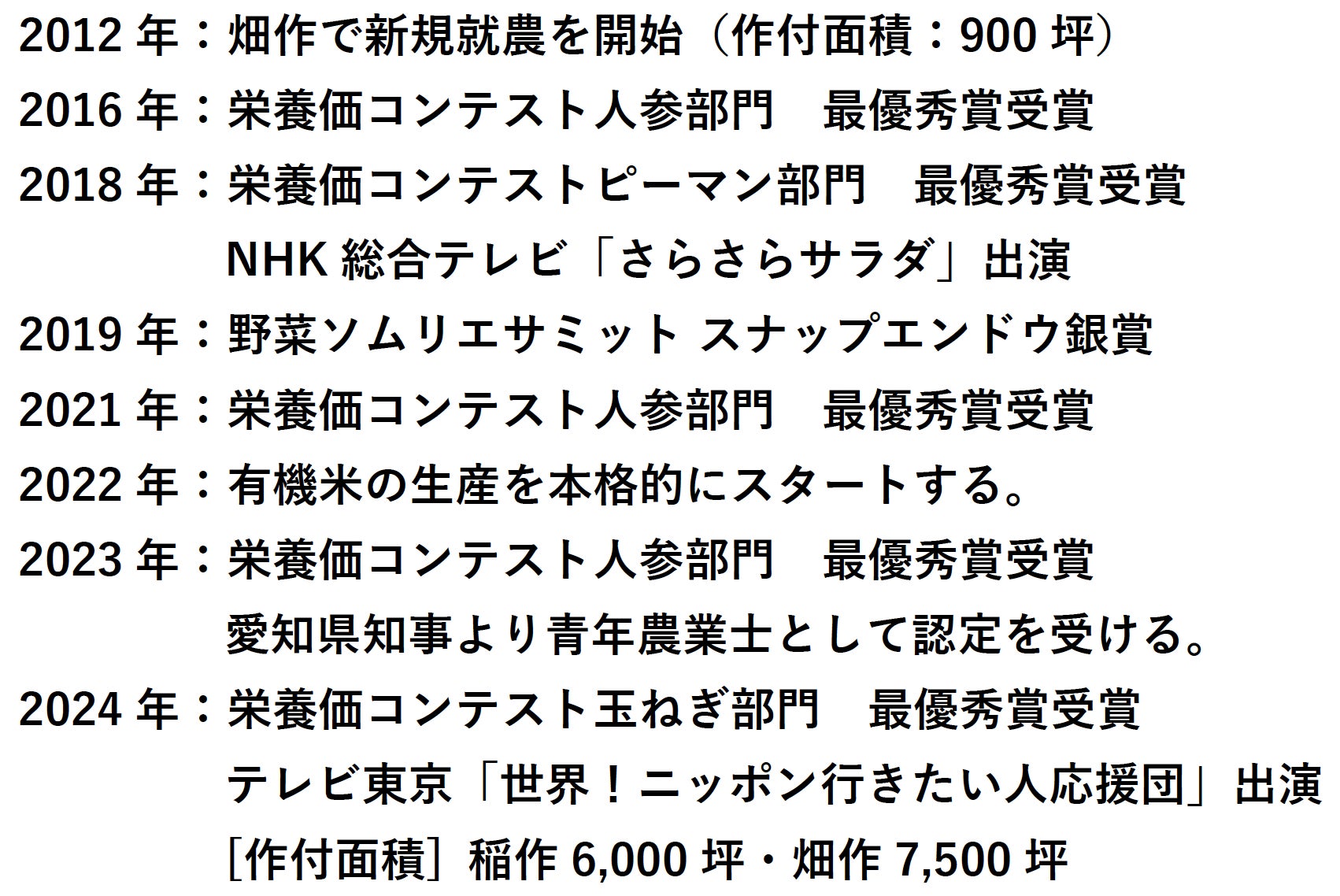 農業は人の「命の材料」を生産するとても責任がある仕事ですので、会社名は提供する農産物に逃げ場のない全責任を持つという決意から自身の名前を社名にしました。