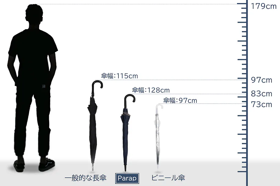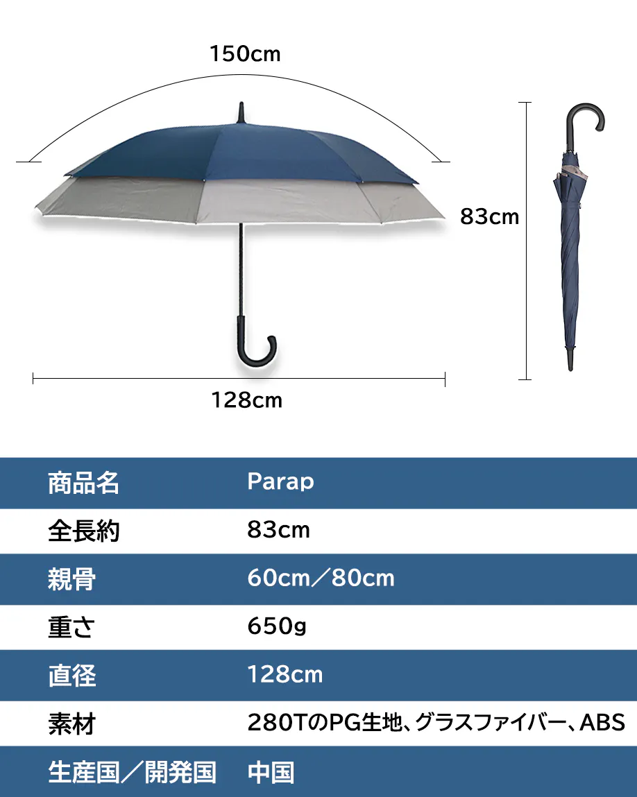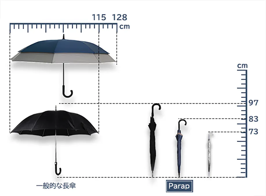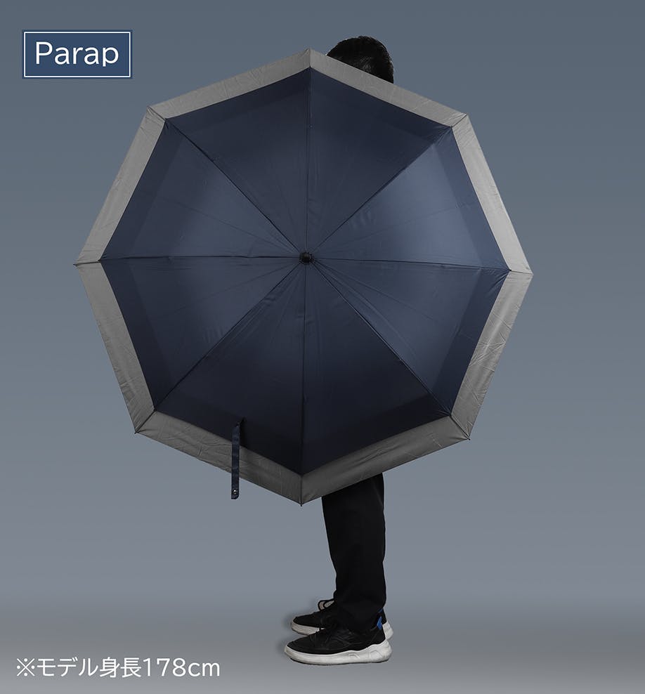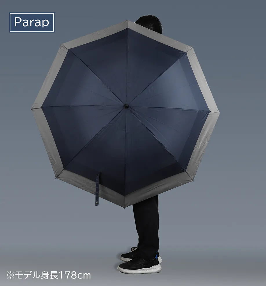 Parapは小柄のビニール傘のサイズ感ですが、傘下直径は驚きの128cmを誇ります。