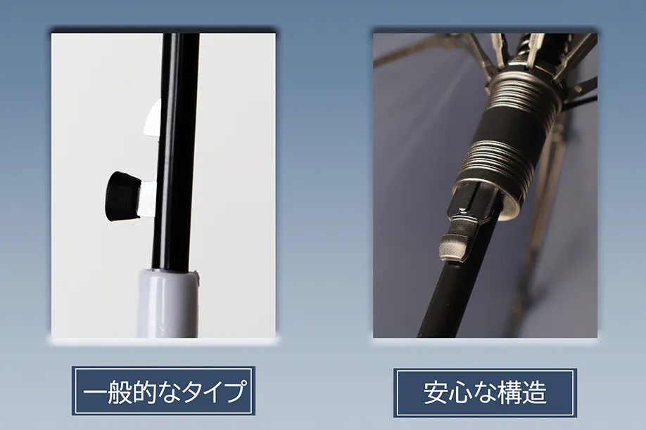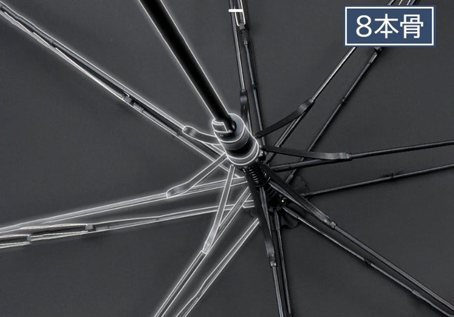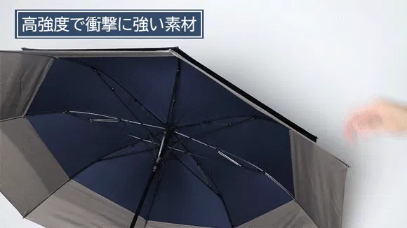 また、グラスファイバーと高強度のアルミ合金からなった8本の骨構造は丈夫で、風を受け流す二層構造とあいまって耐風性が一層強くなります。