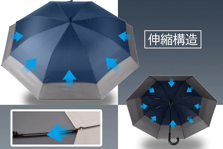 傘の面積を大幅に増加し、あなたを全方位からガードします。