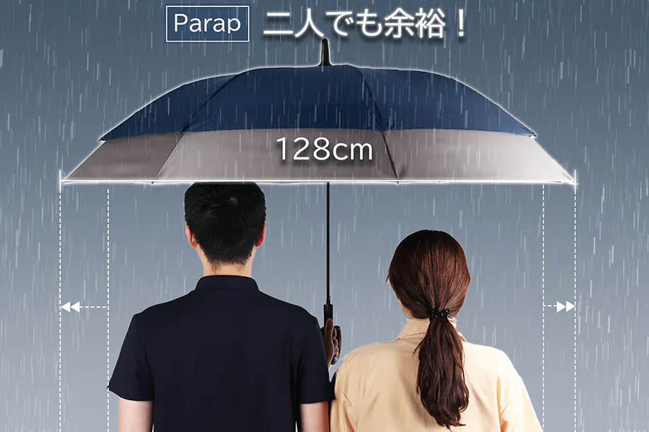 ■小柄なのに超ワイド128cm、二人でも肩が濡れない
