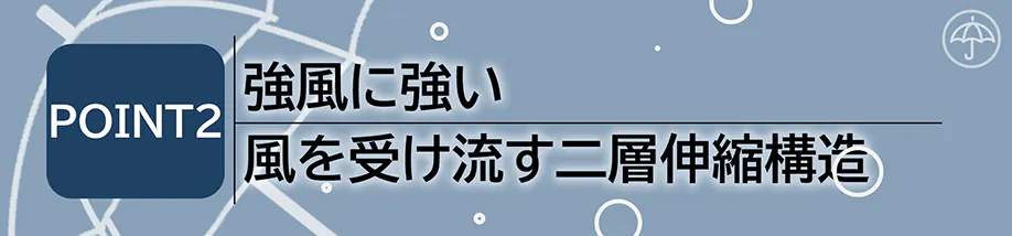 ■強風に強く、風を受け流す二層伸縮構造を採用