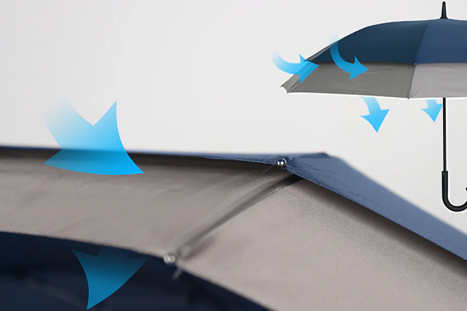 Parapは二層構造を採用し、風にあたるとき、その隙間をすり抜けて、傘にかかった圧力を大幅に減少します。