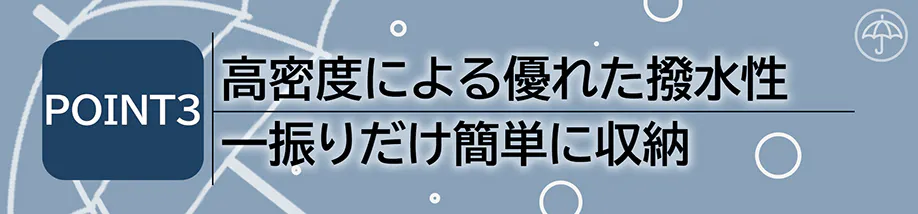 ■280T高密度のPG生地による優れた撥水性、一振りだけで簡単に収納