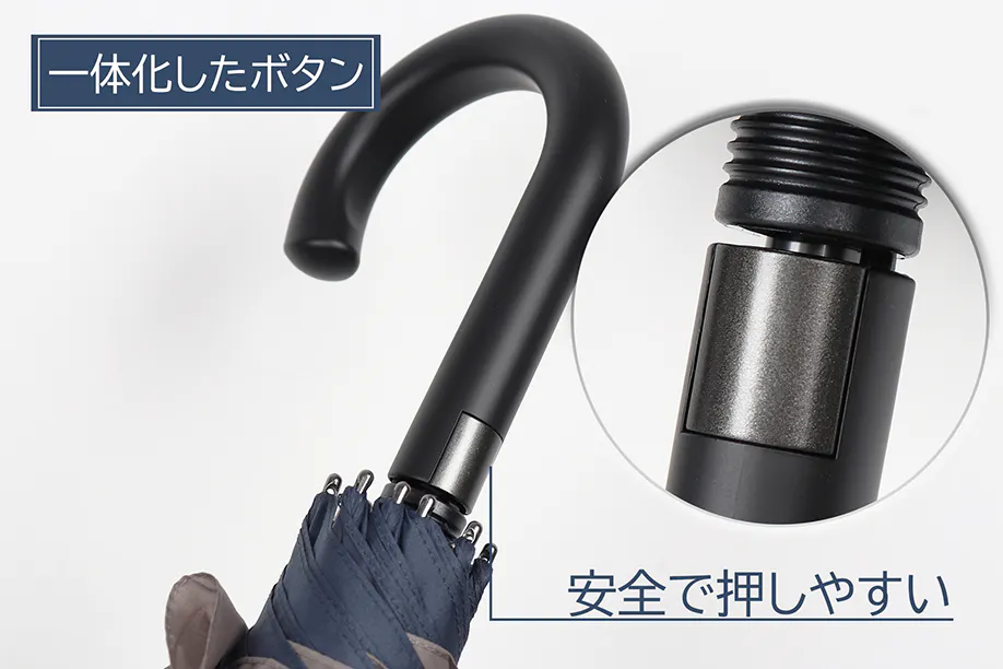 ハンドルと一体化したボタンはより安全で、うっかり指などを怪我してしまう心配がありません。