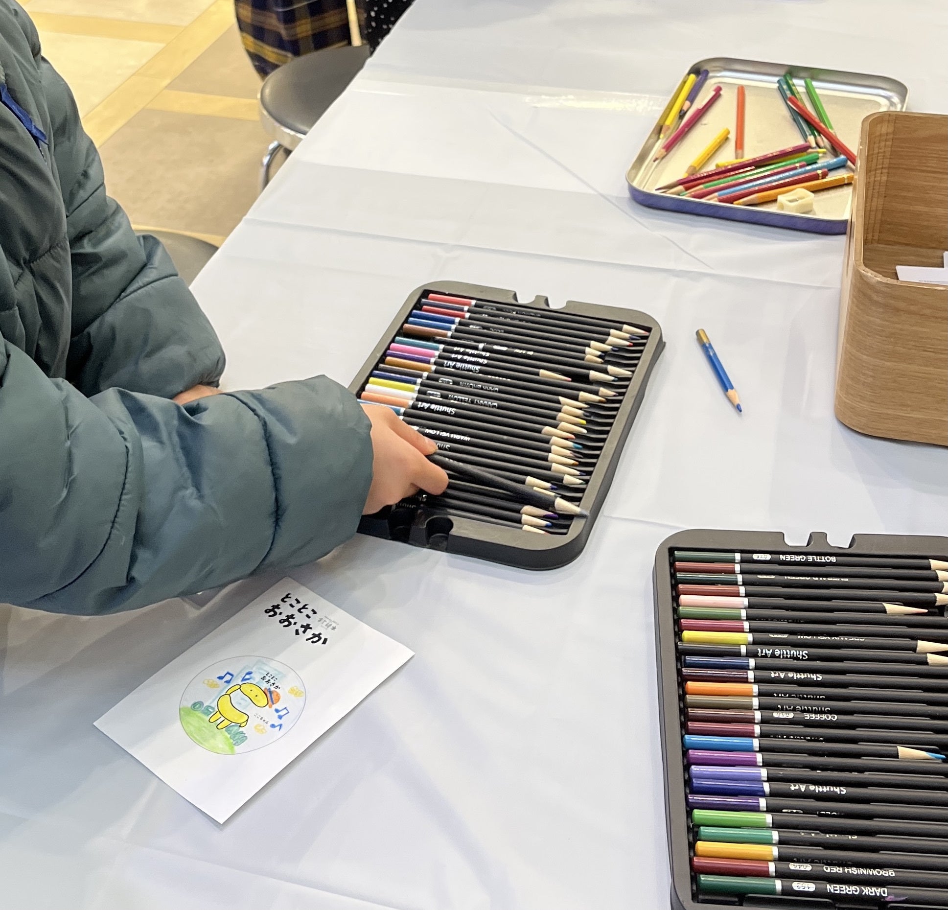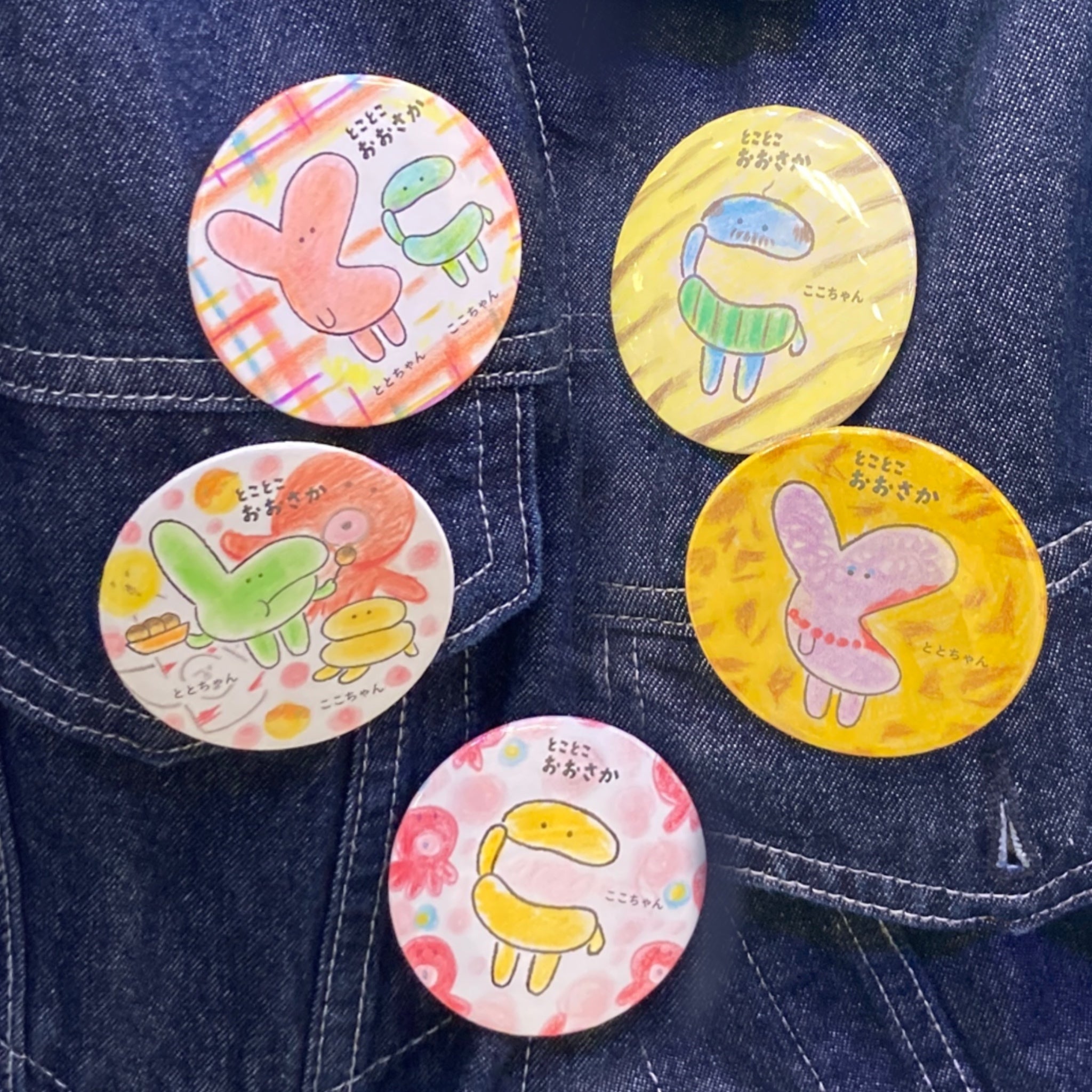 ととちゃんここちゃんに自由に色を塗っていただき、すてきな缶バッジがたくさんできあがりました!