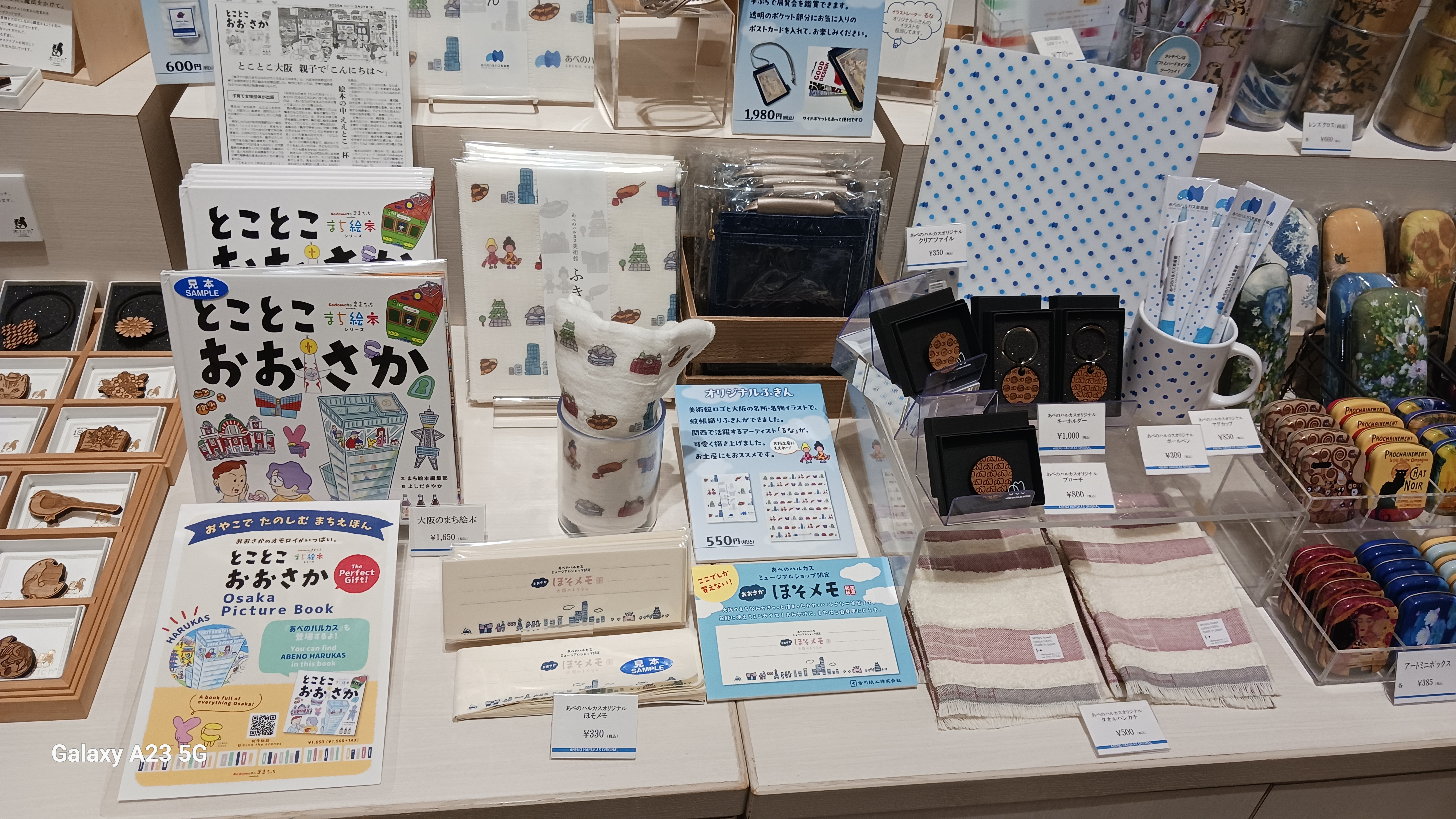 あべのハルカス16階にあるミュージアムショップ。展覧会関連商品、美術関係書籍、ミュージアムショップのオリジナルグッズなど、多数取り揃えられています。まち絵本は、大阪をテーマにしたグッズなどと置いていただいています。