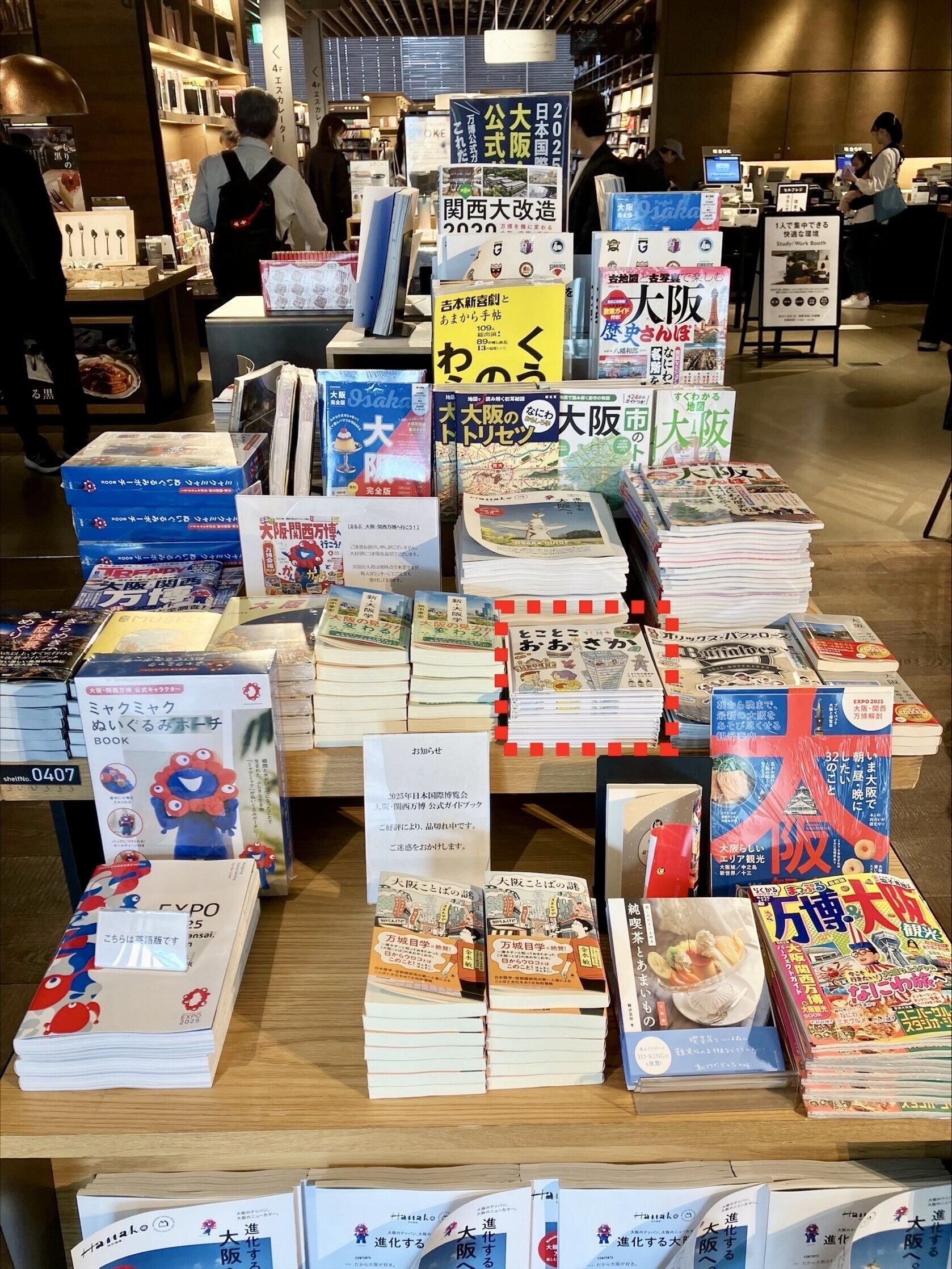 TSUTAYA創業の地・枚方にある、ライフスタイルを豊かにする文化商業施設。その中心となる枚方 蔦屋書店3階では、多数の書籍・雑誌・コミックスを取り扱っています。まち絵本は、3階入り口の万博コーナーに置いていただいています。
