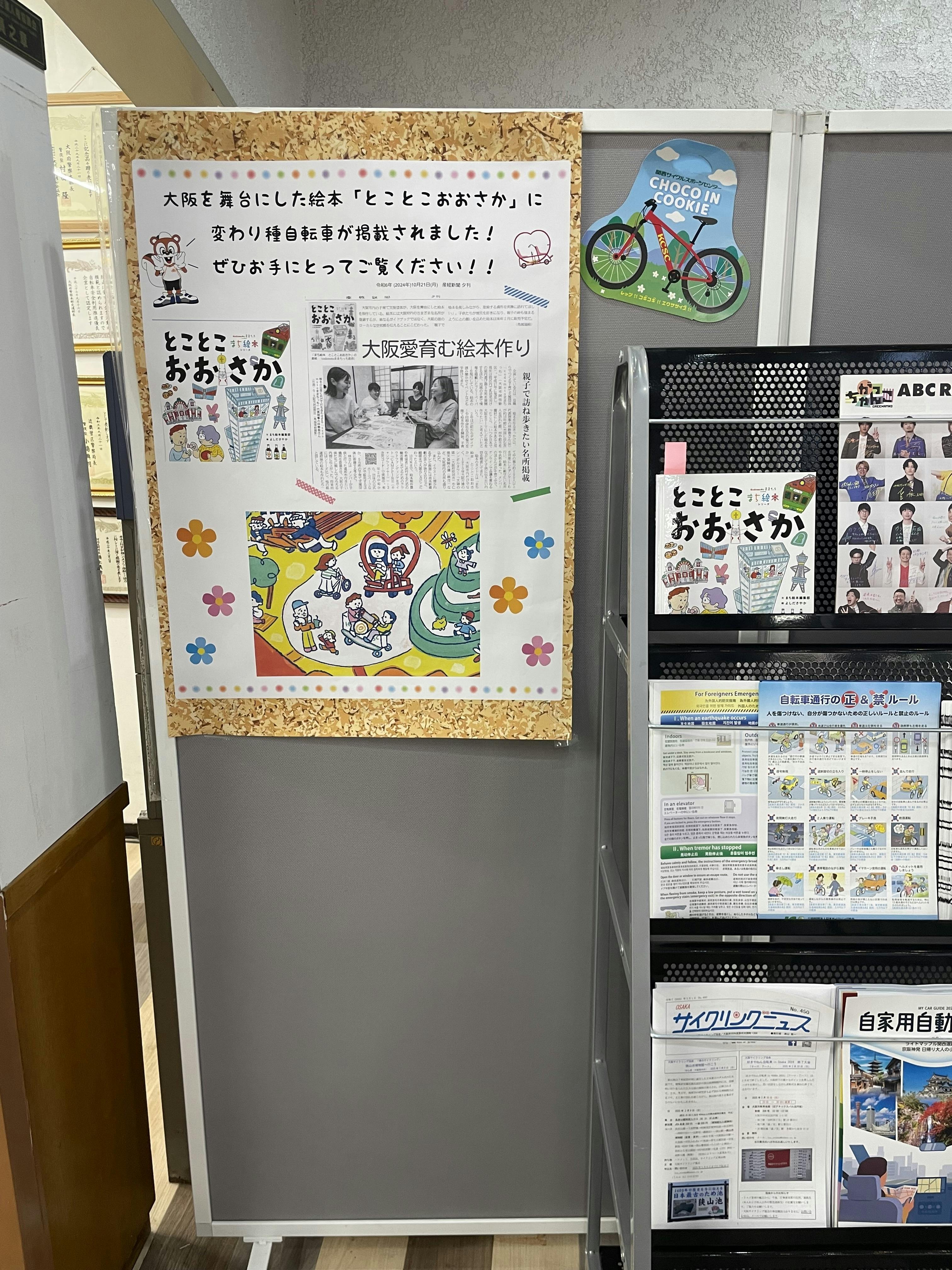 まち絵本制作にあたり、ご協力いただいた関西サイクルスポーツセンターさんの総合案内ターミナルハウス1階にて、まち絵本の閲覧だけではなく絵本の紹介パネルも掲示していただいておりました。ご紹介いただきありがとうございます!