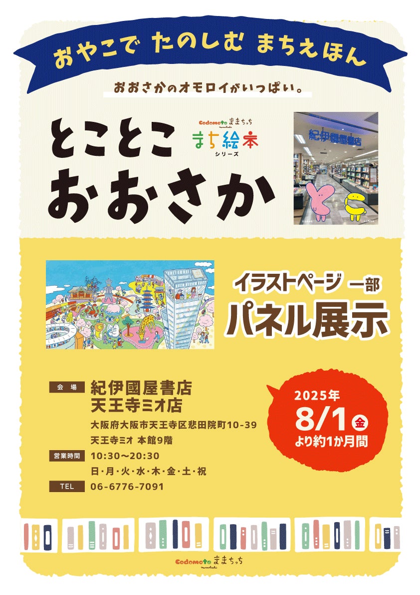 天王寺駅直結の「紀伊國屋書店 天王寺ミオ店」さんで、まち絵本をお取り扱いいただいています。